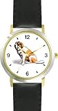 More Detail For Saint Bernard Dog WATCHBUDDY DELUXE TWO TONE THEME WATCH Arabic Numbers Black Leather Strap Children s Size Small Boy s Size Girl s Size